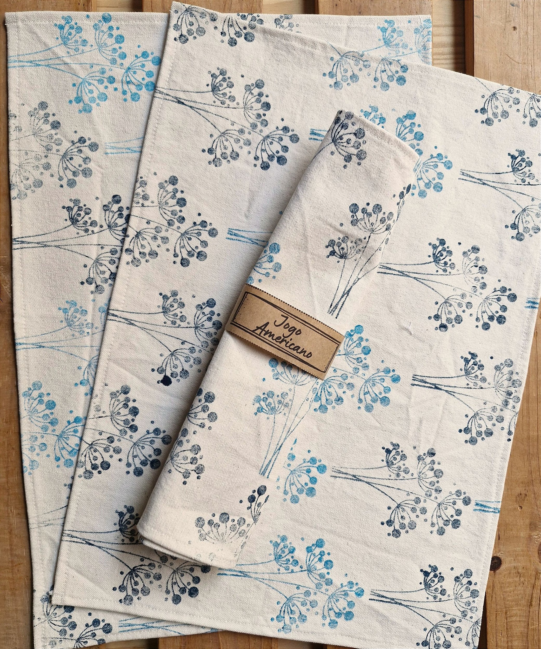Nossos Jogos Americanos são feitos manualmente, pintados individualmente.